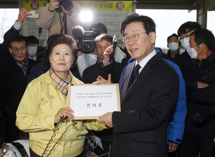 이 대표는 축산 현장과 전통시장 방문 일정으로 민생 행보를 표방했으나, 28일로 예정된 서울중앙지검 출석을 앞두고 검찰 수사에 대한 의견을 피력하는 것도 잊지 않았다. 이 대표는 정읍역에 도착해 만난 지지자 200여명 앞에서 “저는 잠시 안개가 실상을 가려도 결국 시간이 지나면 실상이 드러난다는 사필귀정을 믿고 살아왔다”며 “수없이 공격당하고 음해당했지만 실체가 다 드러나서 많은 국민들이 진정성과 성과를 인정해주셔서 여기까지 왔다”고 말했다.