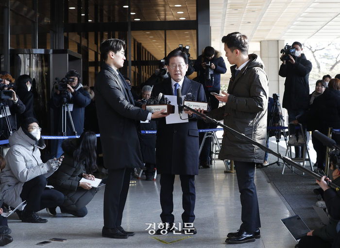 이재명 더불어민주당 대표가 28일 서울중앙지검에서 ‘대장동·위례 개발 특혜 의혹’ 조사를 받으며 사전에 작성한 진술서로 답변을 갈음하기로 하자 국민의힘은 “진술 거부”라며 “범죄자의 두려움으로 해석될 수밖에 없다”고 비판했다. 민주당은 “부당기소에 대한 정당한 방어권”이라며 맞섰다.