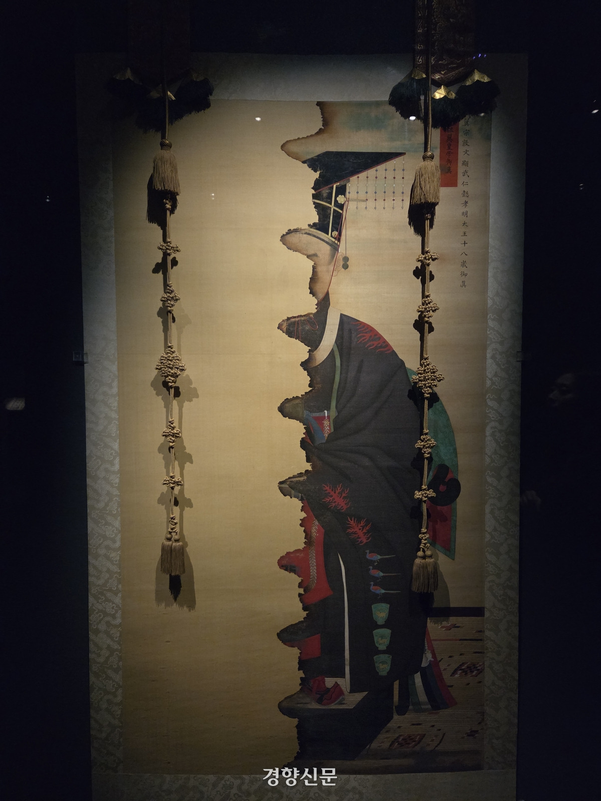 절반 이상 유실된 ‘문조(익종) 어진’(1826)에도 순조의 아들이자 헌종의 아버지인 추존왕 문조의 모습이 그려져 있다. 그가 입은 옷은 왕실 최고의 예복으로 국왕이나 왕세자가 종묘사직에서 제사를 지낼 때 착용한 면복(冕服)이다. 여러 무늬와 문장이 섬세하게 묘사돼 있어 검은 면복의 높은 지위를 실감하게 한다. 고종의 아들 영친왕이 사용하던 규갑(왕실이 의례 때 손에 드는 옥판인 ‘규’를 보관하던 갑)에도 검은색이 칠해져 있다.