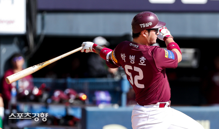 키움이 선취점을 뽑아 1-0으로 앞선 상황에서 타석에 선 박병호는 LG 선발투수 임찬규의 초구 시속 114㎞ 커브가 바깥쪽 높게 제구되자 바로 받아쳐 가운데 담장을 넘겼다. 1차전과 2차전과 마찬가지로, 구장에서 가장 먼 가운데 담장을 넘겼다. 키움은 2-0으로 앞섰다.