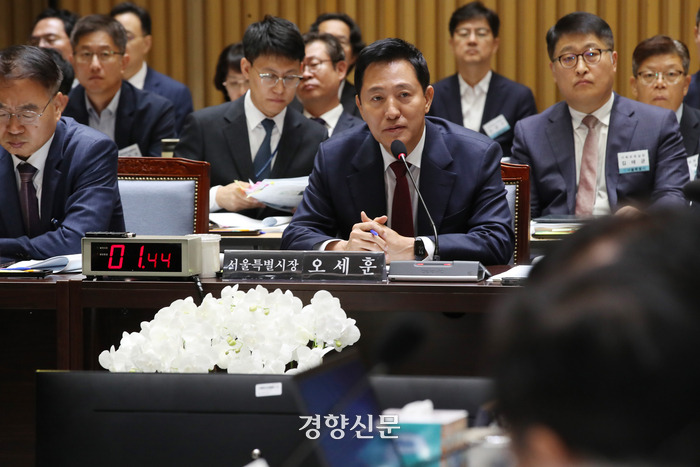 오 시장은 이날 국감에서 “명씨가 서울시장 선거 단일화 과정에서 본인이 판을 짰다고 주장하는데 동의 안 하지 않느냐”는 윤 의원 질의에 “허무맹랑한 소리”라고도 답했다.