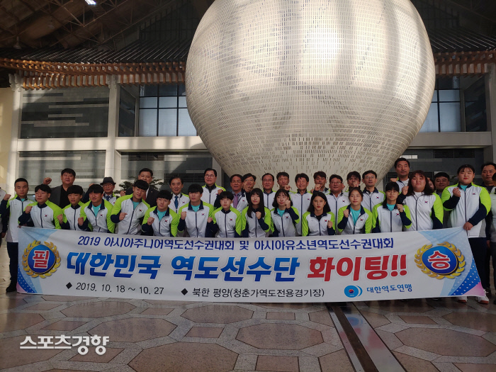 한국 유소년·주니어 역도 대표팀은 오는 20일부터 평양 청춘가역도경기장에서 열리는 2019 아시아 남녀 주니어 및 유소년 역도선수권 대회에 참석하기 위해 18일 평양으로 향했다. 김포국제공항을 통해 중국 베이징으로 출국한 뒤 평양에 도착하는 여정에 나섰다.