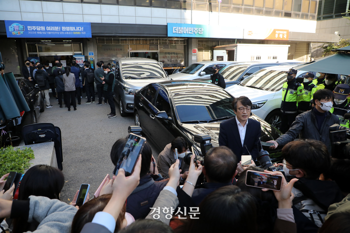 김의겸 민주당 대변인은 당사 앞 브리핑에서 “검찰이 제1야당 당사에 압수수색을 나온 것은 대한민국 정치사에서 유례를 찾아볼 수 없는 무도한 행태”라며 “지지율이 24%까지 떨어진 윤석열 정부가 정치적인 쇼를 통해 어려움을 뚫어보려는 정치적인 행위”라고 비판했다.
