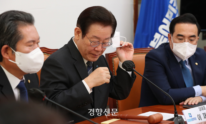 이 대표는 이날 국회에서 열린 의원총회에서 검찰 수사에 대해 “국민이 맡긴 권력을 야당 탄압에 소진하는 사실이 참으로 안타깝다”고 말했다. 이 대표는 대장동 의혹으로 구속기소된 남욱씨가 지난해 입국 도중 “10년 동안 (이 대표를) 찔렀는데 씨알도 안 먹히더라, 우리끼리 돈 먹은 건 2층 시장실이 알면 큰일 난다”고 말한 점을 언급하며 “정권 바뀌고 검찰이 바뀌니 (대장동 업자들의) 말이 바뀌었다. 이런 조작으로 야당을 탄압하고 정적을 제거하고 정권을 유지하겠다는 생각을 버려야 한다”고 말했다.