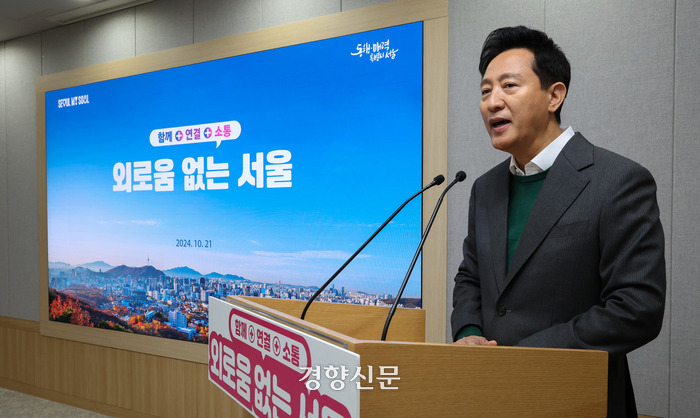 오세훈 서울시장은 21일 종합대책인 ‘외로움 없는 서울’을 공개하고 “기존 고독사 예방을 넘어 외로움을 예방하고, 재고립·재은둔을 막는 체계적이고 입체적인 지원을 통해 ‘시민 누구나 외롭지 않은 도시’를 만들겠다”고 밝혔다.