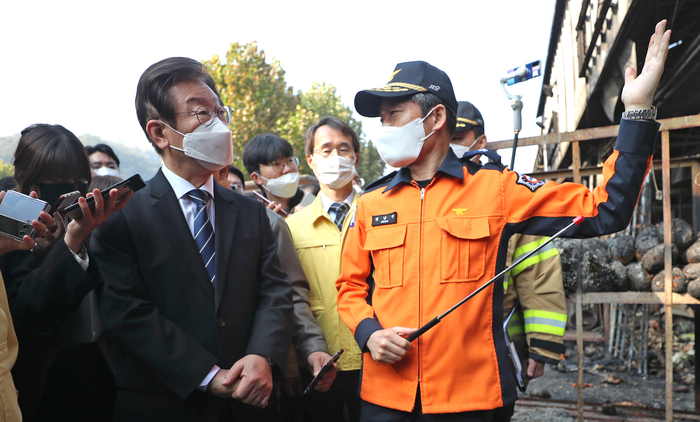이 대표는 지난 25일 발생한 매천시장 화재 현장을 살펴보고 상인들에게 최근 농산물 시세에 대해 물었다. 이 대표는 시장 관리사무소에서 최고위를 열고 “전통시장의 화재 피해는 일상적으로 예측되는 바가 있기도 하다. 막지 못했다는 건 정부 당국의 충분한 관심과 정책 예산 투자가 부족했기 때문”이라고 말했다. 이 대표는 또 “이럴 때일수록 여야정이 안전 사회를 위해 함께 힘을 합칠 필요가 있다”며 “여야정 국민안전대책회의 같은, 진영을 넘어선 초당적 협력기구가 필요하겠다”고 말했다.