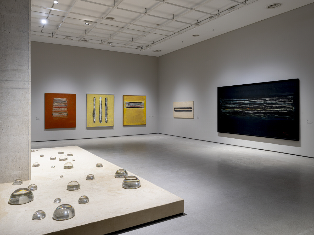 국립현대미술관 서울관은 ‘물방울 작가’ 김창열의 최대 규모 회고전 ‘김창열’을 열고 있다. 물방울 연작 이전의 1950~1960년대 작업부터 물방울이 시행착오를 거쳐 1970년대에 이르러 정립되는 과정, ‘못 그린 물방울이 많다’는 말을 남겼음에도 김창열이 2021년 작고 전까지 천착했던 물방울 그림에 이르기까지 120여점을 볼 수 있다. 유리로 만든 물방울 모양 설치 작업 ‘Ceremony’(1993·재제작)가 1950~1960년대 김창열의 그림을 반사하는 모습이 눈길을 끈다. 김영은, 임영주, 김지평, 언메이크랩 등 현대미술 작가 4팀의 ‘올해의 작가상 2025’ 전시는 각각 다양한 매체로 ‘비가시적인 세계는 어떻게 드러날 수 있는가’를 묻는다.