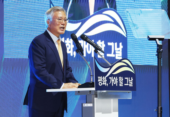 문 전 대통령은 “한반도의 평화의 기운이 넘칠 때 냉전적 사고와 흑백논리 대신 다양성이 존중되고 창의성·역동성이 촉진되며 문화가 더욱 융성해졌다”며 “그런데 지금은 어떤가. 대한민국을 자랑스러워하던 국민들의 자부심이 어디로 갔나”라고 말했다. 그는 “구시대적이고 대결적 이념이 또 다시 우리 사회를 지배하며 남북 관계는 파탄 나고 평화 대신 군사적 긴장이 다시 높아졌다”며 “스스로 평화의 길을 찾고 평화의 중재자가 돼야 한다. 신냉전에 편승하거나 대결 구도의 최선두에 서는 어리석음을 범하지 말아야 한다”고도 했다.