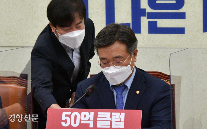 윤 원내대표는 전날 국회 정무위원회의 금융위원회 국정감사장에서 나온 이른바 ‘50억 클럽’ 주장에 대해서도 목소리를 높였다. 정무위 소속 박수영 국민의힘 의원은 경기 성남시 대장동 개발사업 자산관리사인 화천대유로부터 50억원을 받기로 한 사람들의 명단으로 권순일 전 대법관, 박영수 전 특별검사, 곽상도 의원, 김수남 전 검찰총장, 최재경 전 청와대 민정수석과 언론인 홍모씨 6명을 거론했다.