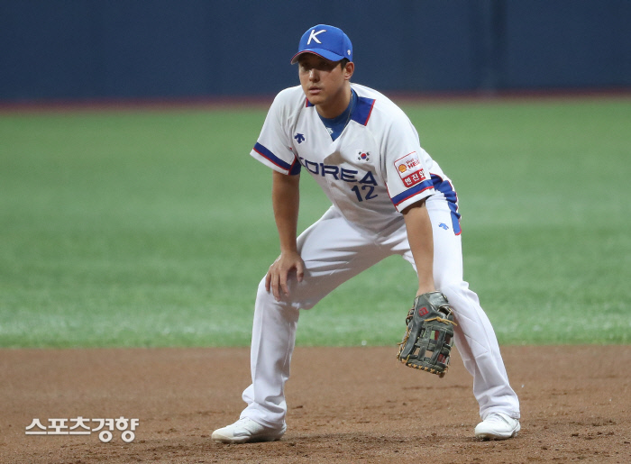 한국은 박민우(2루수)와 민병헌(중견수)로 테이블세터를 꾸렸고, 김현수(좌익수)-김재환(지명타자)-최정(3루수)을 클린업트리오에 배치했다. 양의지가 6번·포수로 그 뒤를 받친다. 그리고 강백호가 7번·우익수로 선발출전한다. 황재균(1루수)과 김상수(유격수)가 하위타선에 배치됐다. 황재균과 김상수는 올 시즌 주로 뛰던 포지션이 아닌, 백업 포지션으로 선발출전하는 게 눈에 띈다. 황재균의 주포지션은 3루수고, 김상수는 유격수로 뛴 시간이 많았으나 올해 KBO리그에서는 주로 2루수로 나섰다.