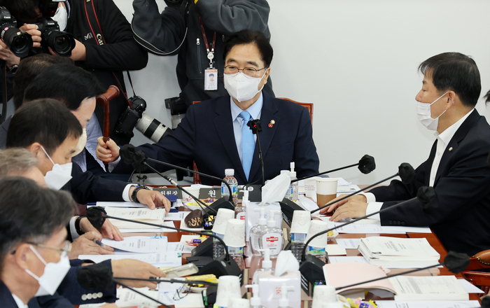 동시에 각 상임위는 쟁점이 된 예산 심사를 진행했다. 행안위는 이날 전체회의를 열고 지난 9일 더불어민주당이 예산소위에서 단독으로 전액 삭감한 경찰국 기본경비 2억900만원 중 2100만원만 삭감했다. 또 예산소위에서 전액 삭감한 경찰국 인건비 3억9400만원도 1억원만 삭감했다. 행안위는 정부편성안에 없던 지역사랑상품권 발행지원 예산을 5000억원 책정했다. 앞서 예산소위는 올해 지원 규모인 8050억원에 맞먹는 7050억원 편성을 의결했다. 국민의힘과 민주당이 경찰국 예산 삭감폭을 줄이는 대신 지역사랑상품권 예산을 추가한 것으로 타협한 셈이다.
