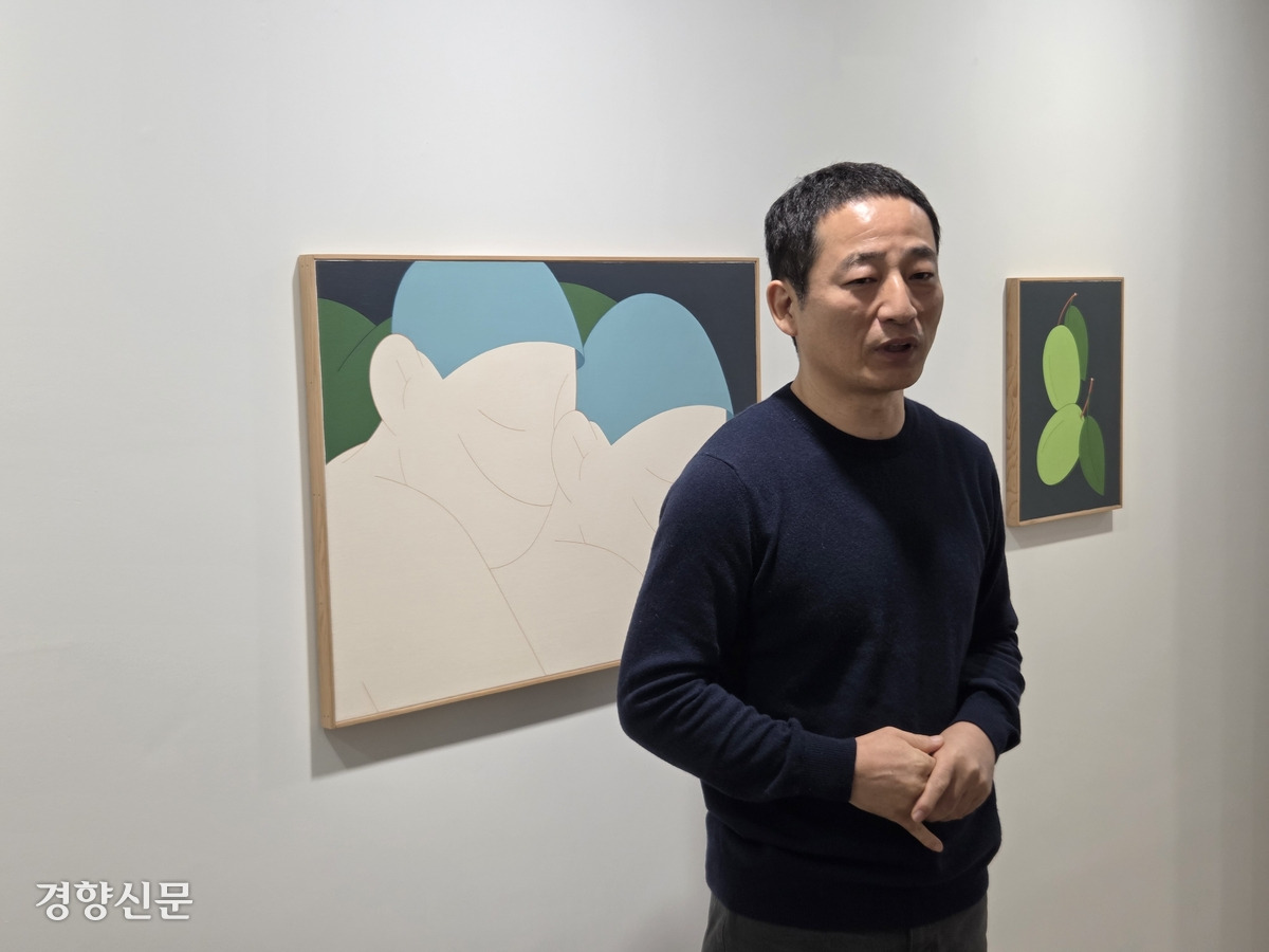 자신의 개인전 개막을 하루 앞둔 지난 6일 서울 종로구 호리아트스페이스에서 작가 변웅필(55)이 말했다. 전시 제목마저도 ‘아무렇지 않은 날들’이다. 그가 2021년 열었던 개인전의 이름은 ‘SOMEONE’, 특정되지 않은 누군가이다. 전시장을 채운 그의 그림 제목 중 다수가 ‘SOMEONE’과 ‘SOMETHING’이다. 그림 속 ‘누군가’에게는 얼굴과 머리와 귀가 있어 그가 사람인 줄은 알 수 있지만 눈·코·입은 빠져있다. 그림 속 서로를 안은 두 사람의 관계 또한 짐작하기 어렵다. 어떻게든 작품의 의미 부여를 차단하려는 듯한 느낌마저 든다.