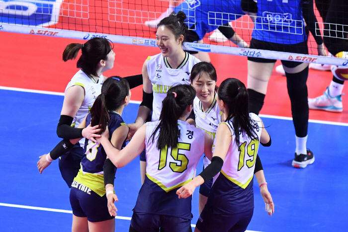 여자배구 현대건설이 4연승을 달리며 선두를 재탈환했다.