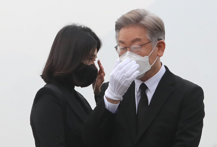 이재명 더불어민주당 대선 후보가 부인 김혜경씨와의 부부 동반 행보를 최근 늘리고 있다. 부인과의 불화설을 불식시키고 자신의 마초적 이미지를 중화시키려는 행보로 읽힌다. 부인이 공개석상에 나서지 않은 윤석열 국민의힘 대선 후보와의 대비 효과도 노린 것으로 보인다.