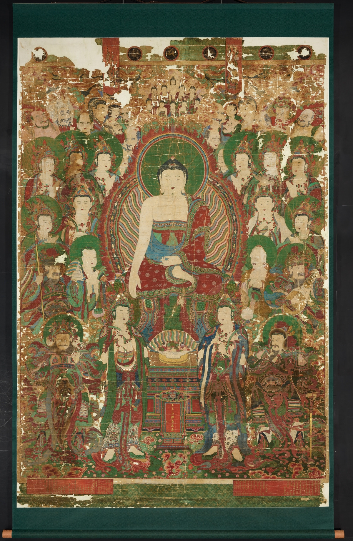 영산회상도는 하단의 기록을 통해 1560년(명종 15년)에 왕실의 장수와 자손 번창을 위해 문정왕후가 발원해 그렸다는 점이 확인된다. 16세기 불화 양식을 잘 담았고, 조선 전기의 군도형 회상도 중 가장 완성도가 높고 표현이 섬세한 것으로 평가된다.