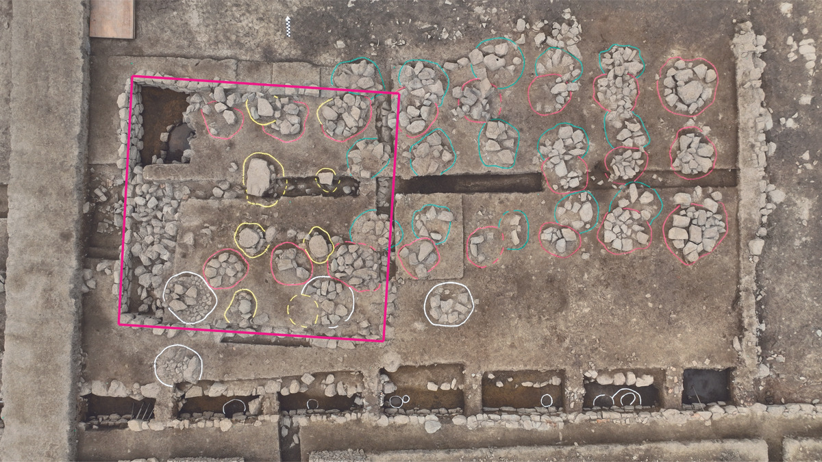 올해 발굴조사에서는 지난해 확인한 3호 건물터의 단면 조사와 세부 조사가 실시됐다. 그 결과 건물터 4동이 같은 자리에서 중첩된 형태로 파악됐다. 한 곳에서 건물이 여러 차례 지어졌음이 확인된 것이다. 건물터 아래에는 네모 모양(7.5m×6.7m) 석축 유구가 확인됐는데, 0.8m 정도 땅을 파내고 가장자리 사면을 냇돌로 쌓은 구조로 돼 있었다. 건물이 들어서기 전에는 건물터 자리가 집수시설 또는 관아 내부 정원시설로 사용됐던 것으로 추정된다.