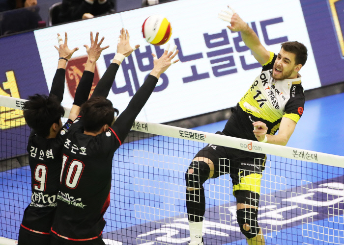 5연패에 빠졌던 남자배구 OK저축은행이 외인 레오 안드리치의 정상궤도 복귀와 함께 살아났다. OK저축은행이 레오의 24점 활약 속에 2연승을 달려 5위에서 3위까지 뛰어올라 선두권 경쟁에 불을 지폈다.