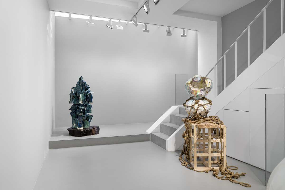김대운은 ‘Blue Ceramic Culture Monument and Color Coordination’(2022)은 이집트나 모로코, 중국 등 해외와 고려청자를 만들 때 쓰였던 여러 종류의 파란 유약을 써서 만든 도자 조각이다. 여러 파편이 한 데 뭉친 모습을 하고 있다. 이 역시 다양한 출신의 불완전한 존재들이 서로 기대어 균형을 이루는 모습을 통해 정상성에 도전하는 것처럼 보인다.