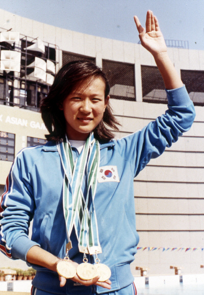 최 신임 차관은 15세 때인 1982 뉴델리 아시안게임에 태극마크를 달고 출전해 여자 배영 100m와 200m, 개인혼영 200m에서 모두 아시아 신기록을 세우고 우승해 3관왕을 차지하며 일약 스타로 떠올랐다. 4년 뒤인 1986 서울 아시안게임에서도 배영 100m와 200m에서 역시 아시아 신기록으로 우승해 아시안게임에서만 금메달 5개를 땄다