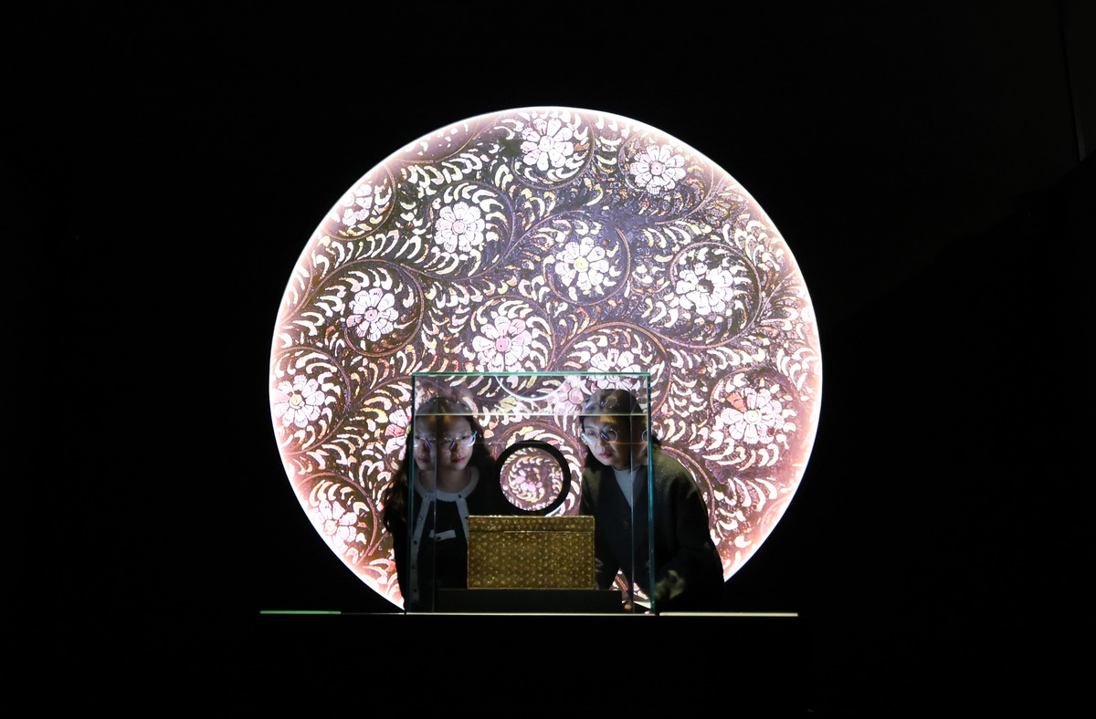 기술이 발달하면서 보존처리할 수 있는 유물의 범위도 점차 커지고 있다. 이번 전시는 다른 기술을 더해 보존처리 과정을 다층적으로 볼 수 있도록 했다. 보존처리가 끝난 대한제국 시기 추정 유물 ‘색회꽃무늬항아리’를 투명 디스플레이 안에 전시하고, 보존처리 이전의 모습을 디스플레이에 띄워 비교할 수 있게 했다. 2023년 일본에서 환수한 고려 나전칠기 ‘나전국화넝쿨무늬상자’는 X선 투과조사 등을 통해 제작연대와 기법을 확인했는데, 전시장에서 확대해 공개하는 무늬를 보면 작은 무늬를 표현하는 데도 여러 색이 정교하게 쓰였다는 사실을 알 수 있다.