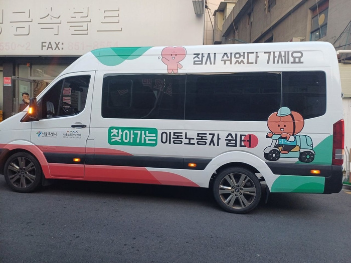찾아가는 이동노동자 쉼터는 휴식 공간으로 꾸민 승합차 4대가 이동노동자들이 많이 모이는 장소를 찾아가는 방식으로 운영된다. 승합차 내에서 휴식을 취하며 간단한 다과도 먹을 수 있다. 장갑, 핫팩 등 방한용품도 비치돼있다.