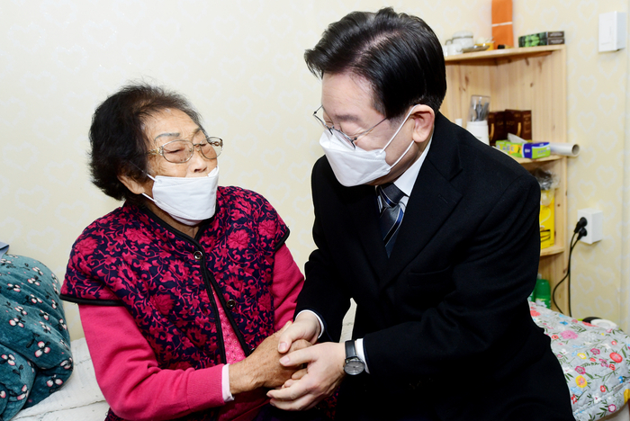 전날에 이어 이틀째 광주·전남을 방문 중인 이 대표는 이날 오전 광주 서구 양 할머니 자택을 찾아 이같이 말했다. 이 대표는 “누군가에게 피해를 입고 ‘사과하라, 책임져라’라고 하는데 (제3자가) ‘내가 돈 줄게’라는 것과 같아서 마음이 좋지 않다”며 “마치 (사과 요구를) 돈 때문에 그러는 것 같아서”라고 말했다. 양 할머니는 “그 사람들에게 사죄받고 싶다. 잘못한 사람에게 사죄받아야 편하지 우리 같은 동지끼리 내가 받으면 마음이 안 좋다”고 말했다. 이 대표는 양 할머니에게 “건강하시기도 하지만 정신이 아주 바르게 계신 것 같다. 돈이면 다 된다고 생각하는 사람과 완전히 다르다”고 말했다.