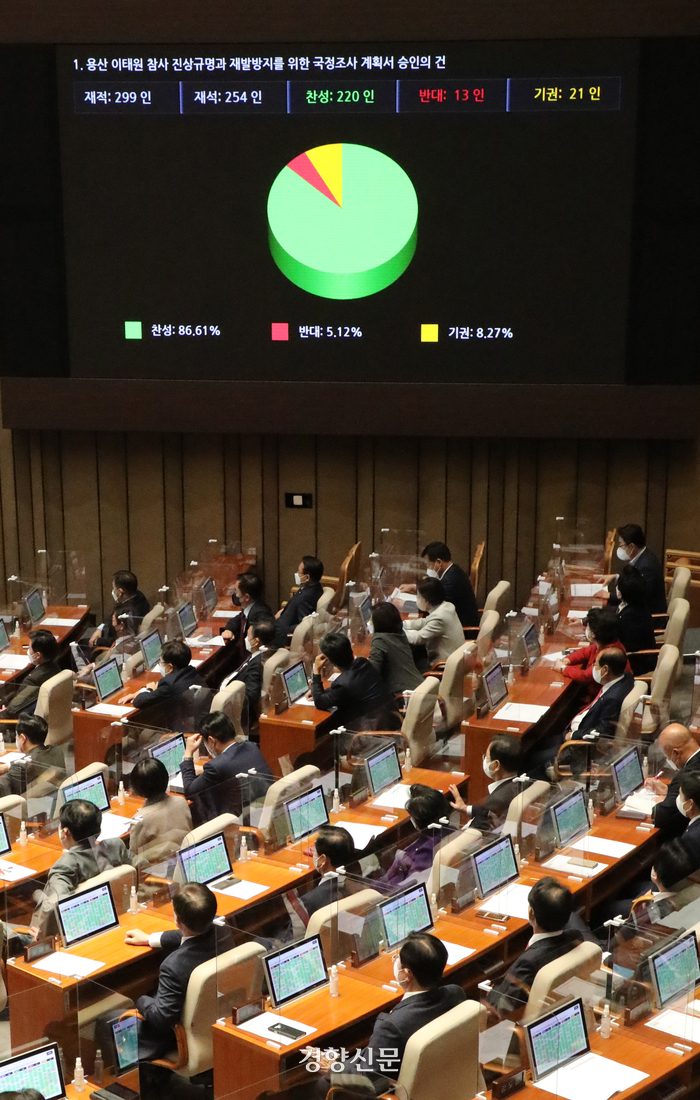 그러나 김진표 국회의장이 여야 합의가 이뤄지지 않은 데다 처리할 안건이 없다는 이유를 들어 지난 1·2일 본회의를 열지 않았다. 김 의장은 내년도 예산안을 처리하기 위해 8·9일 본회의를 열겠다는 의사를 밝혔다. 국회 법제사법위원회에서 일부 법안들이 통과돼 본회의 처리가 필요한 안건들도 있다.