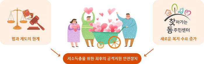서울형 긴급복지제도는 2015년 시작됐다. 주소득자의 사망, 질병, 실직, 휴·폐업 등이 발생한 시민이 정부의 기초생활보장이나 서울형 기초보장 등 다른 복지제도의 지원을 받기 전에 긴급하고 일시적으로 지원하는 제도다. 국가형 긴급복지는 기준중위소득이 75% 이하, 재산이 3억1000만원(금융재산 600만원) 이하일 때 받는 것과 달리, 서울형 긴급복지는 기준중위소득 100% 이하, 재산 4억900만원(금융재산 1000만원) 이하일 때 받을 수 있다.