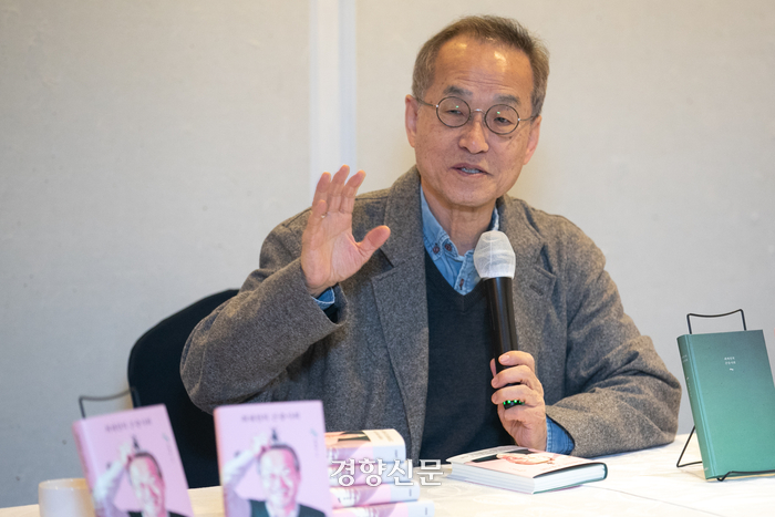최재천 이화여대 석좌교수는 14일 서울 종로구 한 식당에서 연 에세이 <최재천의 곤충사회> 기자간담회에서 이렇게 말했다. 생태·동물행동학자, 사회생물학자이면서 저서와 강연을 통해 자신의 의견을 피력해 온 최 교수는 2013~2021년 각계에서 연 강연 등을 바탕으로 이번 책을 펴냈다.