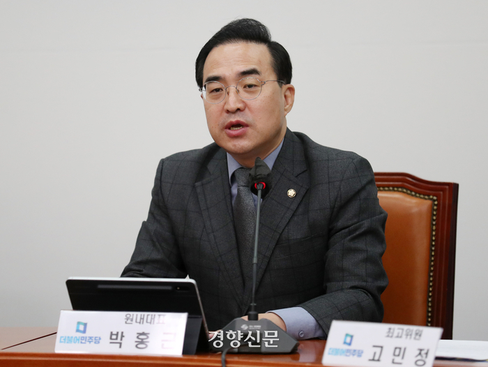 박 원내대표는 이날 국회에서 열린 민주당 정책조정회의 도중 이 대표 구속영장이 청구됐다는 소식이 들리자 이렇게 말했다. 서울중앙지검 반부패수사1·3부는 대장동·위례 개발특혜 의혹, 성남FC 후원금 의혹 관련 이 대표에게 특정경제범죄가중처벌법상 배임, 특정범죄가중처벌법상 뇌물 등의 혐의를 적용해 구속영장을 청구했다.