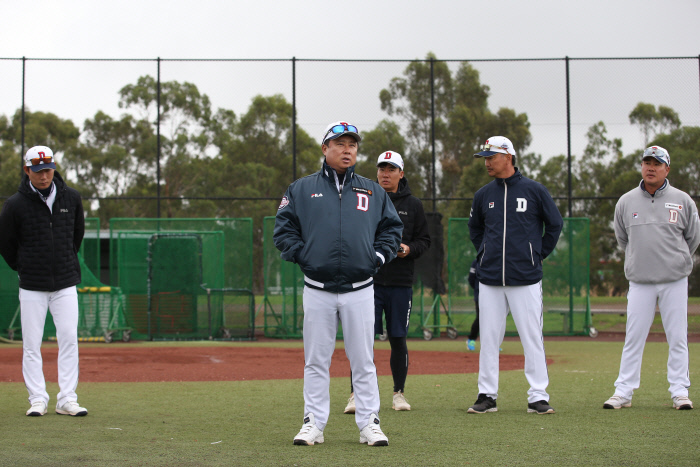 그러면서도 김 감독은 “아직 실전을 한 경기 치렀다. 선수들의 기용을 판단하려면 캠프를 끝까지 봐야 한다”고 했다. 여느 팀처럼 두산도 2차 캠프에서 본격적인 실전 모드에 돌입하는데, 이 때 좋은 모습을 보이는 투수가 1군 자리싸움에 유리한 위치를 점할 수밖에 없다. 두산은 1차 캠프에서 연습경기를 단 한차례 밖에 치르지 못했다. 호주 대표팀과 두 차례 연습경기를 갖기로 계획했는데, 이 중 한 경기는 비 때문에 취소됐다.
