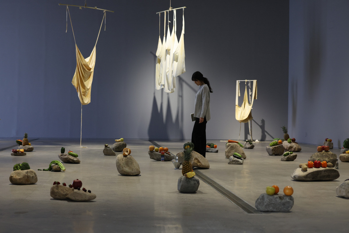 중미 과테말라의 마야 칵치켈 부족 작가인 에드가 칼렐은 ‘고대 지식 형태의 메아리’(2021·2026년 재제작)에서 크고 작은 서른 개의 돌 위에 과일과 채소를 올려 놓았다. 칵치켈 부족이 조상에게 지내는 제례를 작품으로 재현했다는 것, 돌 위의 과일과 채소도 시간이 흐르면 변한다는 것 외에 독특한 특징이 있다. 영국 테이트 미술관은 2023년 이 작품의 소유자가 아닌 보호자가 되기로 결정했다. 이 작품은 칼렐과 그가 속한 부족의 동의가 있어야 전시할 수 있고, 테이트는 이 작품이 소유의 대상이 아니라는 점을 인정하는 차원에서 ‘보호자’를 자청했다. 미술관이나 박물관, 혹은 수집가가 미술품의 소유권을 갖고, 시장에서의 수요가 있어야만 미술품의 가치가 가격으로 결정된다는 기존의 상식에 의문을 제기하는 것이다.