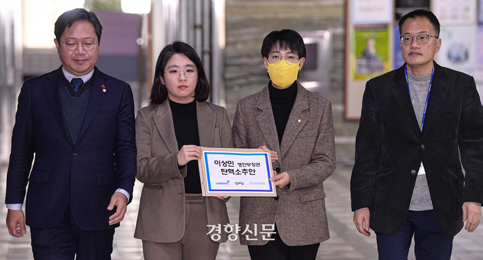 민주당은 이날 오전 의원총회를 열고 이 장관 탄핵소추안 당론 발의를 결정했다. 박홍근 민주당 원내대표는 의원총회 후 기자들과 만나 “개별 전화나 면담 등을 통해 의원들의 의견수렴 절차를 밟은 결과 제 생각보다 압도적으로 많은 의원들이 탄핵소추가 반드시 필요하다 또는 부득이하다는 의견을 주셨다”고 말했다. 과반 의석을 보유한 민주당이 탄핵소추안 발의를 확정하자 이 장관 탄핵소추를 주장해온 정의당과 기본소득당도 공동발의에 참여했다.