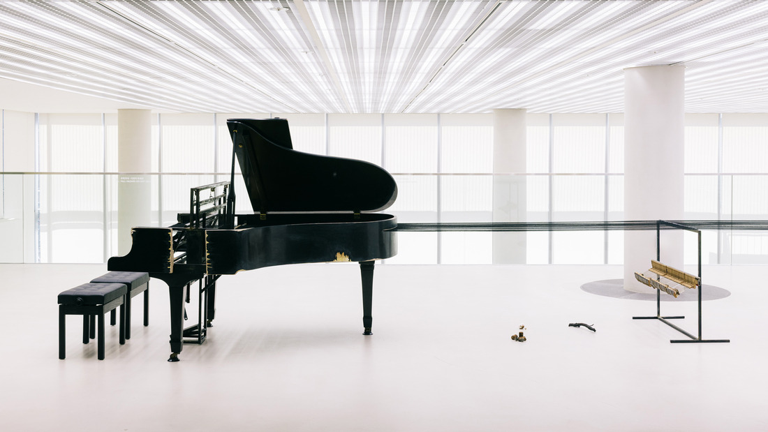서울 종로구 서울시립 미술아카이브에서 지난 6일부터 열리는 전시 ‘우리는 끊임없이 다른 강에 스며든다’에 전시된 권은비 작가의 ‘폐허의 잔해로 직조한 시’. 사회적 문제를 예술로 비판해 온 권 작가는 한 참사 분향소 철거를 돕다가 유가족들의 목소리가 음률 같이 들려 피아노 모양의 방직기를 만들었다. 방직기는 대표적인 자본주의의 상징이다. 자본주의가 빚은 참사의 발생 과정, 참사에 얽힌 사람들의 생애가 서로 얽혀 슬픈 이야기를 만들어내는 것이다.