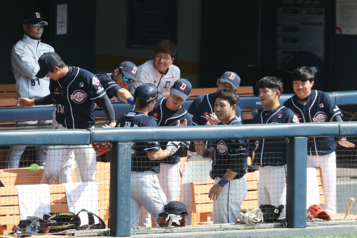 김태형 두산 감독은 “다른 팀과의 연습경기에서는 잘 시도하지는 않는 변화다. 청백전이기에 시도를 해봤다”며 “정규시즌에서도 이런 변화를 보기는 쉽지 않겠지만 만일의 사태에 대비하는 차원”이라고 설명했다. 오랜만에 유격수 수비를 봤던 허경민은 “낯설고 새로웠다. 머리에서는 고등학교 때 생각이 나는데 몸은 다르더라”며 “옆에 최고 유격수 (김)재호형이 있어 부담감도 느꼈다. 그래도 재미있는 경험이었다”라고 말했다.