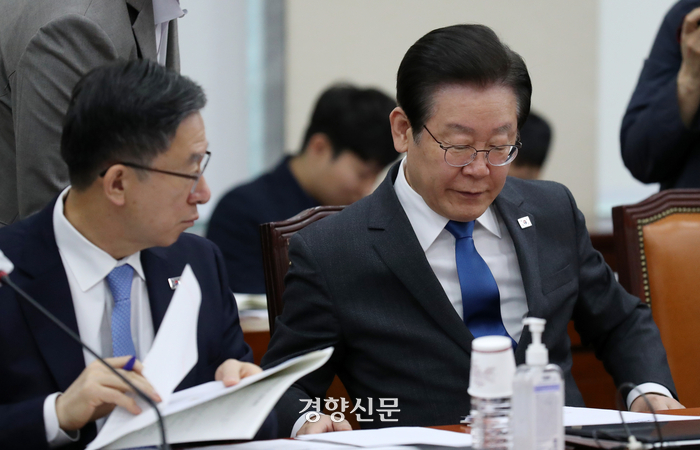 이재명 대표는 의총 후 기자들과 만나 전해철 의원 발언에 대해 “정당은 다양성이 생명이다. 의견이야 다양하게 있는 것”이라며 “표출하고 수렴하고 조정해가는 게 민주주의 아닌가 싶다”고 말했다.