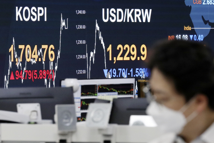 25일 코스피지수는 전날보다 94.79포인트(5.89%)가 오른 1704.76을 기록했다. 이날 외국인 투자자가 시가총액 기준 3360억어치, 기관이 1053억원어치를 순매도한 반면 개인 투자자들은 이날 하루만 4519억원어치를 순매수했다. 이날 유가증권시장 및 코스닥시장의 총 거래대금은 22조2989억원으로 1996년 코스닥시장이 개장한 이래 최대이기도 했다.