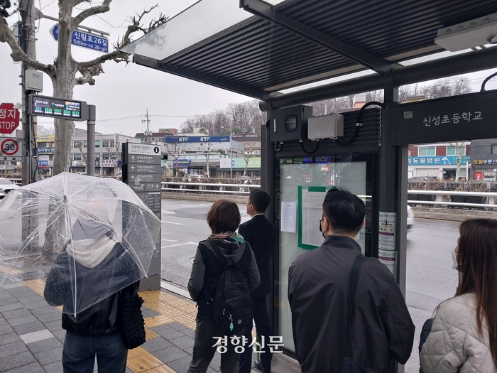 해당 버스정류장은 신림역까지 바로 가는 시내버스를 타거나 신림선을 타려고 호암로에서 버스를 타고 온 승객들이 내리는 곳이다. 이날도 시내버스 파업 소식을 미처 알지 못했던 승객 10여명은 발을 동동 구르며 버스를 기다렸다.