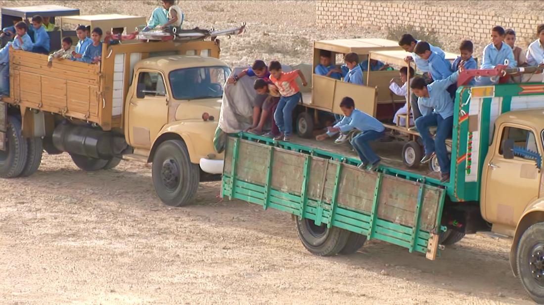 이집트 작가 와엘 샤키의 작품 ‘텔레마치 사다트’ 속 한 장면이다. 사다트는 1981년 10월 열병식에서 암살당한 안와르 사다트 전 이집트 대통령을 뜻한다. 샤키는 이집트 한 시골 마을에서 사다트가 숨진 열병식과 그의 장례식을 트랙터와 트럭 등으로 패러디했는데, 군중으로 동참한 베두인 아이들의 반응을 영상으로 담아냈다. 사다트의 암살은 이집트인들에게 큰 충격을 안겼지만, 사건을 겪지 않았던 아이들에게는 슬픔이 느껴지지 않는다. 실제 있던 일을 다루되 정치적·사회적 해석을 덜어낸 새 관점에서 보려는 게 샤키의 의도다.
