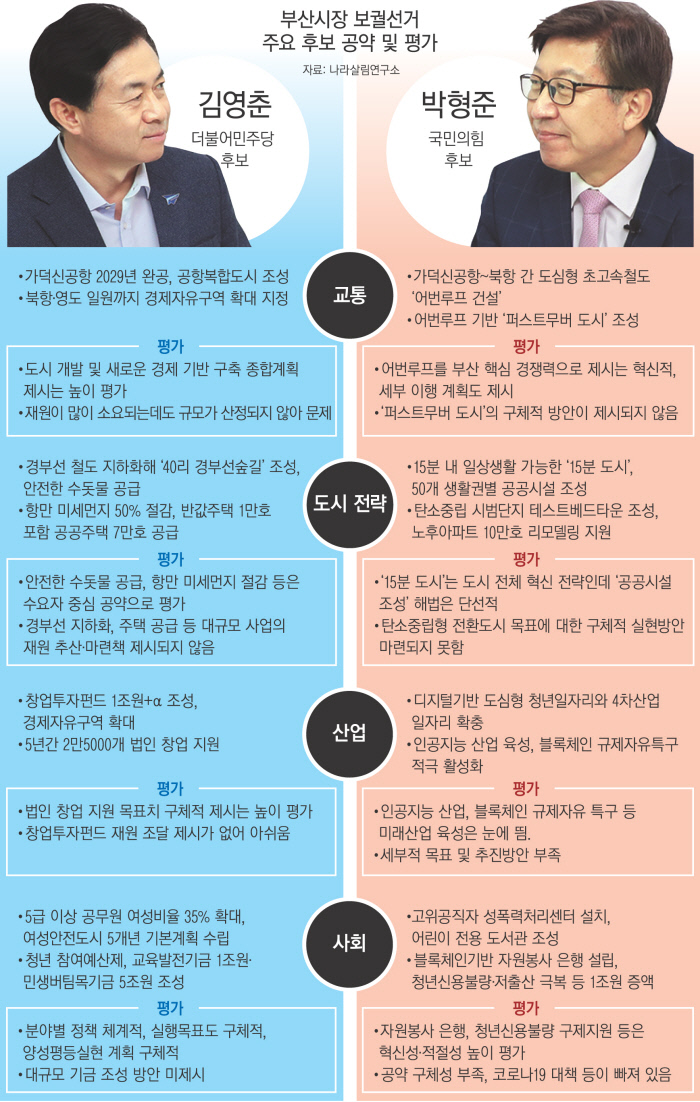 경향신문·나라살림연구소 공동 재·보선 공약 분석 - 김영춘·박형준 후보, 교통·도시·산업·사회정책