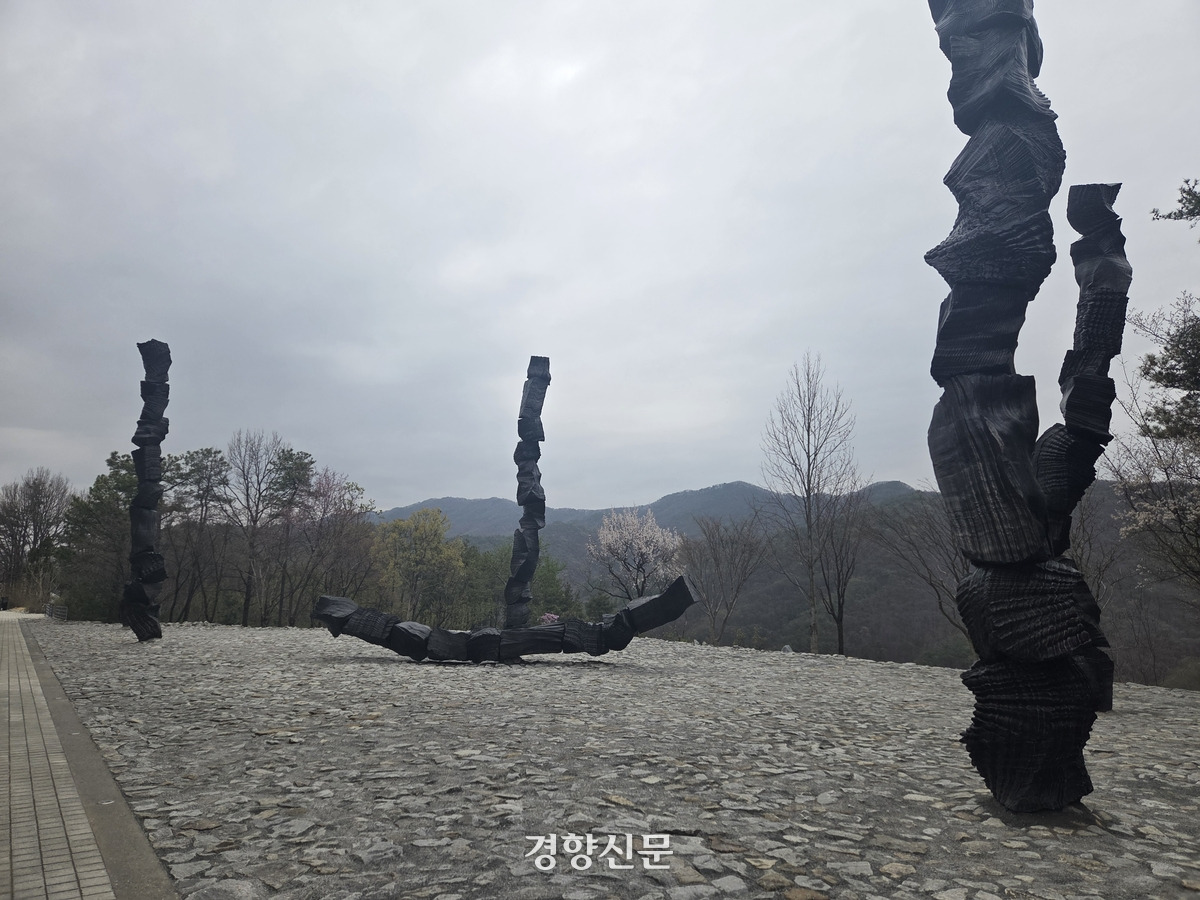 그는 “몇년 전 강원 고성에서 산불이 났을 때 작가들과 현장을 갔다. 집 안의 도자기와 밥그릇이 서로 붙어있는 걸 보고 1200~1300도 이상 뜨거웠으리라 생각했다”며 “그 주변에 개미가 올라오는 것을 보고 너무 놀랐다. 자연을 멀리하고 인간 중심으로 살았다는 생각도 많이했다”고 말했다. 그러면서 “전쟁이나 많은 재앙이 생겨나고 있다. 조각을 세우면서 다시는 큰 재앙이 안 왔으면 좋겠다는 인간적인 염원도 했다”고 말했다. 무탈한 일상을 위한 염원과 풍작을 기원하는 농부의 기다림은 서로 닮은 것 같기도 하다.