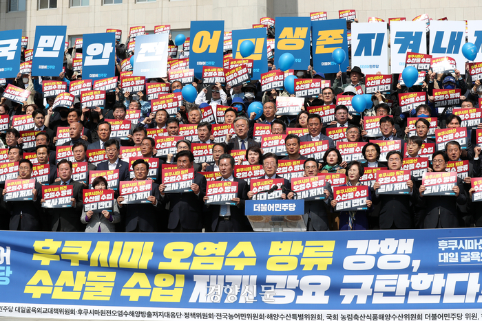 강민국 국민의힘 수석대변인은 이날 논평에서 “민주당이 강제동원 해법에 대한 죽창가에 국민의 관심이 떨어지니 이제 주특기인 괴담 유포에 나서려는 것”이라며 “민주당이 방사능 괴담을 유포하는 목적은 분명 국론 분열”이라고 밝혔다. 강 대변인은 “대통령실이 거듭 ‘후쿠시마 산 수산물이 국내에 들어올 일은 없다’고 명백히 말해도 민주당이 끊임없이 방사능 괴담을 유포하는 이유가 여기에 있는 것”이라며 “괴담 유포로 국민의 불안을 조장하는 민주당은 결국 내년 총선에서 국민의 준엄한 심판에 벌벌 떨게 될 것”이라고 말했다.