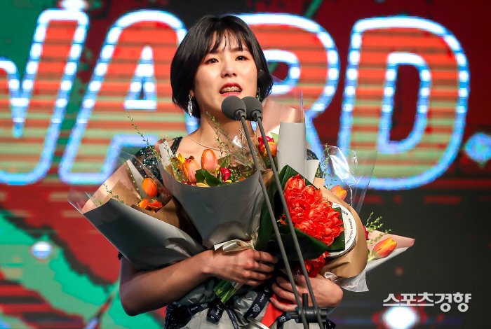 흥국생명 이재영이 1일 서울 양재동 더케이호텔에서 열린 도드람 2018~2019 V리그 시상식에서 MVP상을 수상하고 소감을 얘기하고 있다. 이석우 기자