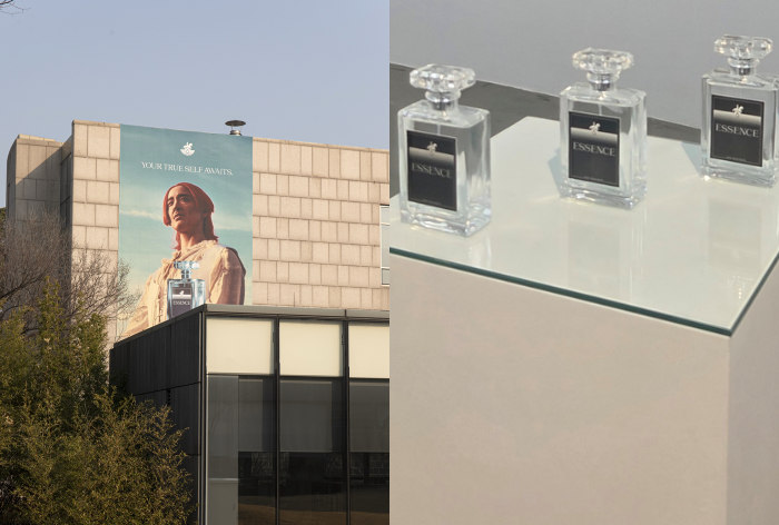 전시장 내부엔 향수 모양 ‘에센스(보틀)’(2024)가 있는데, 향수병 안에 든 것은 투명색의 조향용 알코올이다. 미디어 등에서 묘사되는 남성성의 이미지로 포장된 것의 공허함을 상기시킨다. 그의 작품에서 묘사하는 것은 서울 시내를 채운 대형 전광판에서 끊임없이 재생되는 것이기도 하다. 성소수자를 소재로 한 작품 속에서 도시 ‘서울’의 잔상이 강하게 남는 건 그 때문일까.