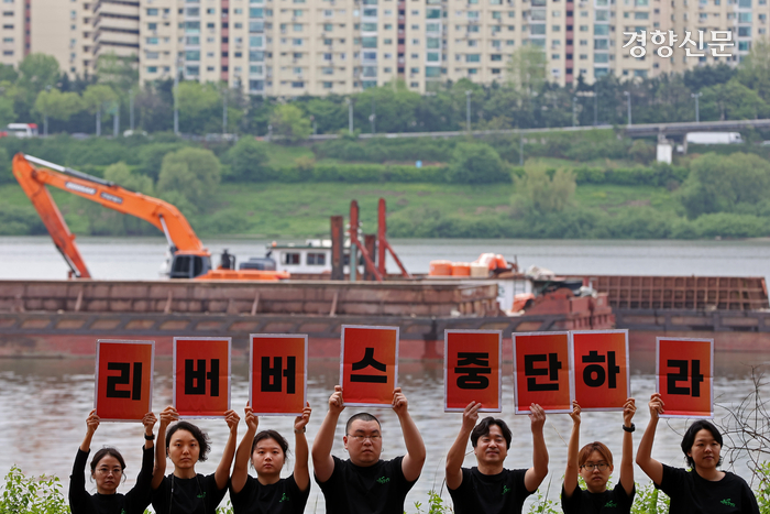 서울환경연합은 이날 성동구 옥수역 인근에 조성 중인 리버버스 선착장 예정지에서 기자회견을 열고 “선착장을 위해 호안식생을 제거하고 강바닥을 굴착기를 파내고 있는데, 지하철보다 빠르지 않은 리버버스가 대중교통 역할을 할 수 있을지 의문”이라고 밝혔다.