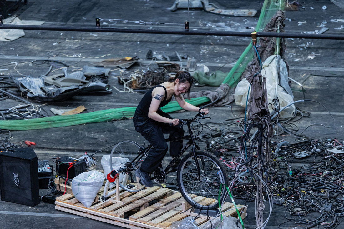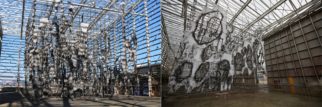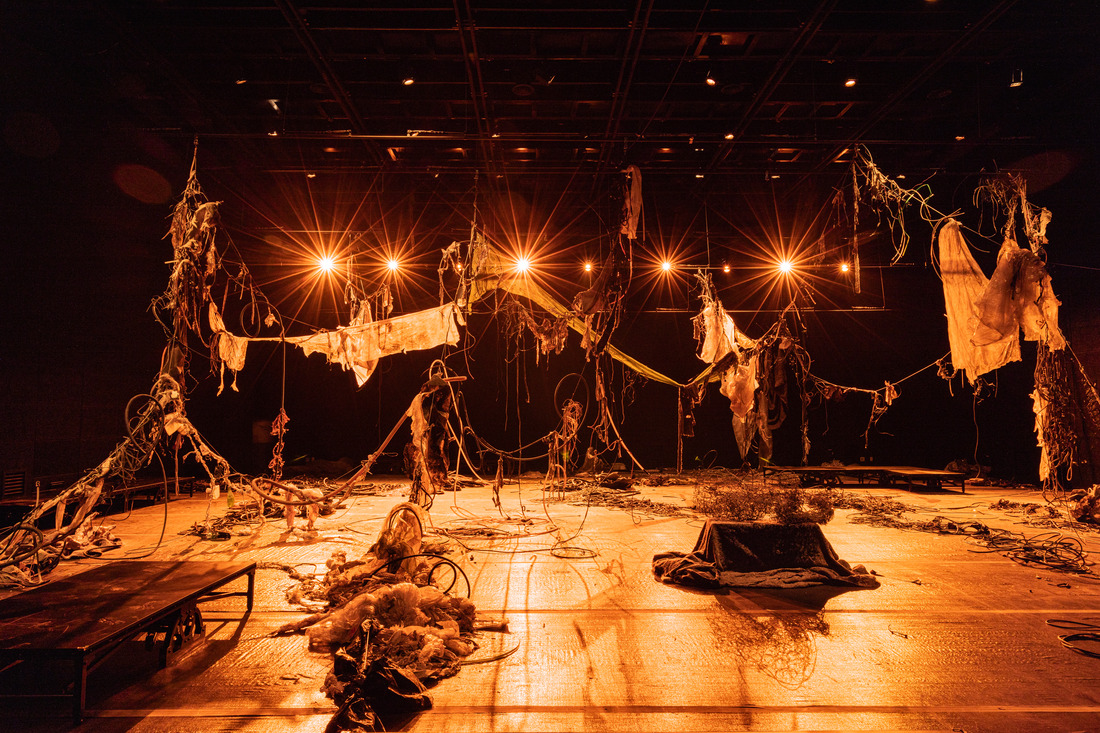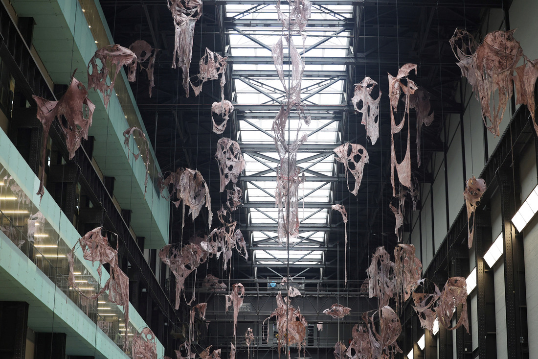시선을 천장으로 옮기면, 넝마 같은 장막이 걸쳐져 있었다. 이미래(37)가 한국 작가로 처음 영국 런던 테이트모던 미술관 터빈 홀에서 지난달 16일까지 연 개인전 ‘열린 상처’에서도, 2022년 부산비엔날레에서 영도 폐공장에 전시됐던 ‘구멍이 많은 풍경 : 영도 바다 피부’에서도, 지난달 28~30일 서울 종로구 국립현대미술관 서울관에서 진행했던 퍼포먼스 ‘미래의 고향’에서도 그랬다.
