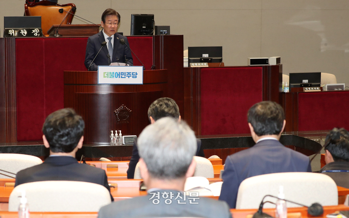 이재명 더불어민주당 대표는 이날 국회에서 열린 의원총회에서 “(한·일 정상회담에 이어) 이번 한·미 정상회담에서 역시 정부는 국익을 지키는 데 실패했다. 우리 기업과 산업을 지키기는커녕 사실상 미국으로 공장 옮기는 일만 거들었다”며 “일본에는 퍼주고 미국에는 알아서 한 수 접는 ‘호갱(호구+고객) 외교’라는 비판을 피하기 어렵다”고 말했다.