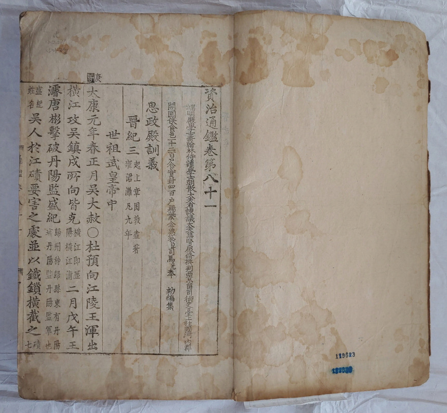 함께 보물로 지정예고된 <자치통감> 권81~85는 1434년 만들어진 금속활자인 ‘초주갑인자’로 찍은 책이다. <자치통감>은 중국 북송나라 사마광이 편찬한 중국 역사서로, 조선에서는 1434년(세종 16년) 편찬에 착수해 1436년(세종 18년)까지 총 294권이 완료됐다.