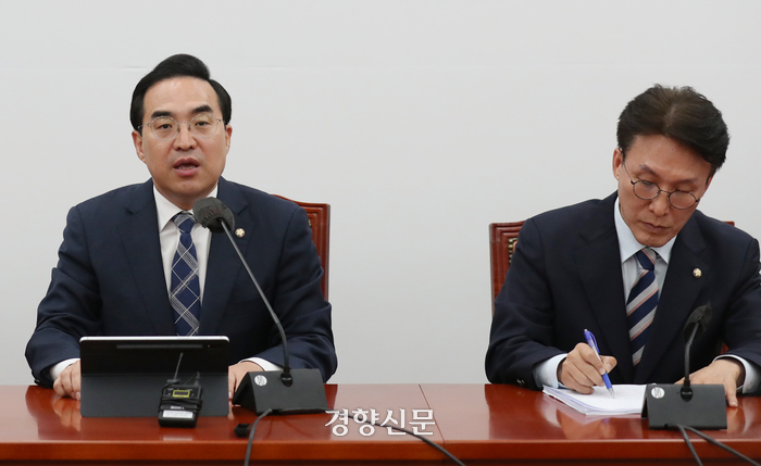 박 원내대표는 이날 국회에서 열린 당 정책조정회의에서 “윤 대통령의 (양곡법) 거부권 강행은 식량주권 포기이자 민생 발목잡기”라며 “양당 원내대표, 정책위의장, 농림축산식품해양수산위원회 간사까지 3명씩 참가하는 토론을 제안한다”고 말했다.