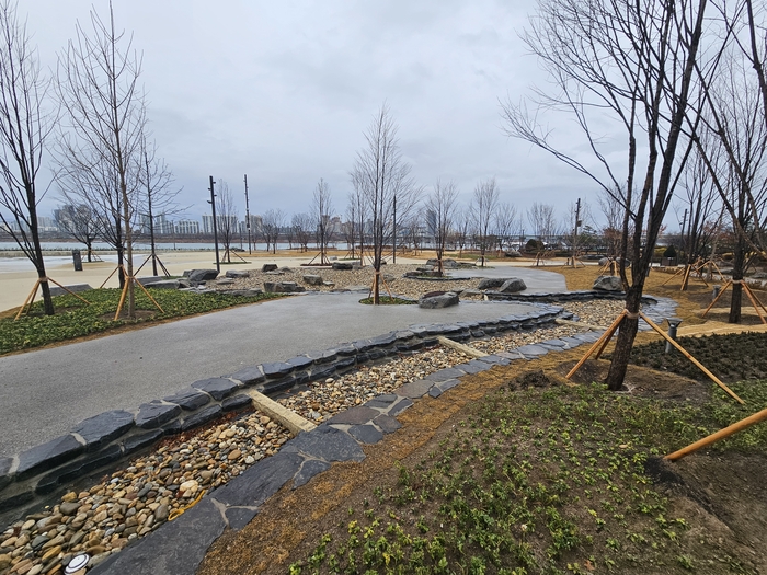 가장 큰 테마풀인 ‘원더풀’에는 한강 방향으로 인피니티월이 설치됐다. 뒤쪽에는 가운데로 갈수록 수심이 깊어지는 최대 수심 60㎝의 조이풀, 아이들을 위한 얕은 수심의 유아풀이 설치됐다. 자갈로 만든 실개천인 ‘자연형 계류’는 수심이 낮아 족욕하며 휴식을 취할 수 있다. 모래놀이터, 잔디쉼터, 숲속산책로, 밤에 조명 사이를 거닐 수 있는 물빛길 등 산책·휴식 공간도 함께 설치됐다.